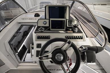 NOTE SUL PREZZO ... DATI PRINCIPALI Cantiere: Ranieri International Modello: Next 330 LX Anno Costruzione: 2024 Lunghezza: 10,15 m Condizione: usato Stato conservativo: eccellente Tipologia: Motoscafo FB Codice: 903070 Imbarcazione semi nuova con 40h di moto, unico proprietario, motori in garanzia 5 anni Si informa che i dati comunicati dal proprietario sono ritenuti corretti ma non garantiti e non contrattuali. Le fotografie utilizzate, se indicato, possono essere di repertorio. MOTORI Potenza: 2 x 300 Hp Modello: Mercury V8 Trasmissione: Fuoribordo Anno: 2024 Ore moto: 40 ABITABILITÀ Numero cabine: 1 Numero bagni: 1 Posti letto cabina: 2 Posti letto salone: 2 Posti letto totali: 4 DATI TECNICI Larghezza: 3 m Velocità massima: 52 Kn Velocità di crociera: 30 Kn Serbatoio carburante: 500 l Categoria di navigazione: B - D'altura Impianto elettrico: 24V, 220V STRUMENTAZIONE ELETTRONICA DI NAVIGAZIONE AIS, Angolo barra, Bussola, Comando motori elettronico, Computer di bordo, Contametri catena, Contaore, Display, GPS, Joystick, Luci di navigazione, Monitor dei consumi, Pilota automatico, Plotter, Plotter con antenna GPS, Sedile Copilota. ALLESTIMENTO TECNICO E DI COPERTA Allarme fumo/gas, Allarme motore, Ancora, Batterie, Caricabatterie, Cavo corrente di banchina, Doccia esterna, Elica di prua - bow thruster, Flap elettrici, Flap idraulici, Indicatori Flaps, Lavandino nel Pozzetto, Luci di cortesia, Luci subacquee, Monitor batteria, Pompa di sentina automatica, Pompa di sentina elettrica, Pompa di sentina manuale, Ponte in teak (Eco teak), Pozzetto Teak, Presa 220V banchina, Salpa Ancore Elettrico, Tavolo pozzetto, Tavolo Salone Abbattibile, T-Top. DOTAZIONI DOMESTICHE DI BORDO Aria calda, Indicatore del Serbatoio dell'Acqua, Indicatore del Serbatoio delle Acque Reflue, Indicatore della pressione dell'olio nel motore, Indicatore della temperatura del motore, Pavimento interno in legno, Prese interne 12v, Prese interne