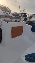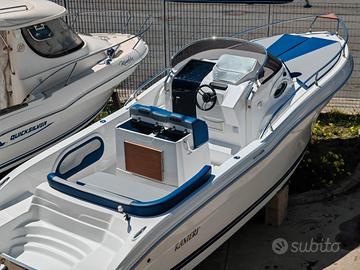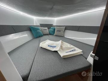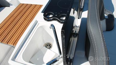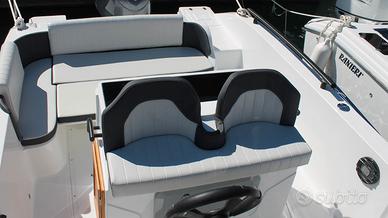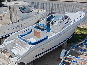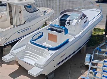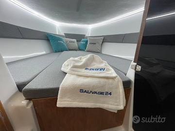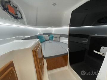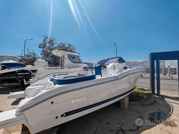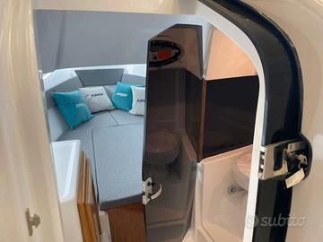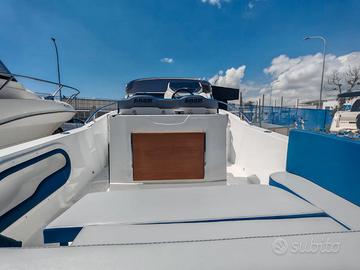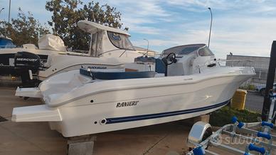 Barca Ranieri Sauvage 24 Dimensione: Mt. 7,30 x 2,45 Peso: Kg. 1400 Portata persone: 12 Motorizzazione massima: Hp. 350 Motorizzazione minima: Hp. 150 Capacità serbatoio carburante: Lt. 250 Capacità serbatoio acqua: Lt. 90 Gambo motore: 1 XL - 2 L Posti letto: 2 Omologazione CE: C/B Dotazioni di serie: Pompa di sentina - Luci di navigazione - Timoneria idraulica - Serie corrimano - 4 bitte ormeggio - Scaletta di risalita Prendisole di prua con cuscineria standard - Scafo bianco - Tappezzeria esterna - Pannello consolle retroilluminato - Serbatoio carburante Lt. 250 - Doccia con serbatoio Lt. 90 - 2 Oblò consolle - Lavamani - 2 Poltroncine stand-up - Staccabatteria - USB /12V - Luci cabina - Cabina Luxury - Blower - Mobile Storage cabina. Optional presenti: Mobile Storage pozzetto - Frigo Lt. 42 - Wc marino - Plancetta di poppa c/scaletta - Luci di cortesia. Per info contattaci Possibilità di motorizzare con motore Mercury finanziamento TASSO ZERO, 5 anni di garanzia. PREZZO RIBASSATO "FUORI TUTTO" DA € 83.783,00 a € 60.000,00 Pronta consegna, Finanziabile e Fatturabile