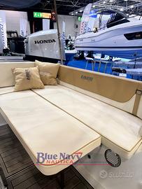 DATI PRINCIPALI Cantiere: Ranieri Modello: Sauvage 34 - barca espositiva Anno Costruzione: 2026 Lunghezza: 10,3 m Condizione: nuovo Codice: 887924 Sauvage 34 è l'espressione dell'eccellenza dei Cantieri Nautici Ranieri: design raffinato, comfort di bordo e prestazioni di alto livello. Nato dalla passione di chi vive il mare da sempre, questo elegante coupé è il risultato di anni di progettazione, esperienza sul campo e profonda conoscenza delle esigenze dell'armatore. Costruito interamente in modo artigianale, il Sauvage 34 utilizza materiali avanzati e soluzioni costruttive di pregio. Scafo, carena e hard top possono integrare fibre di kevlar su richiesta, garantendo robustezza, affidabilità e ottime doti di stabilità e manovrabilità anche in condizioni impegnative. Gli interni ed esterni sono curati nei minimi dettagli, con materiali selezionati per comfort e durata nel tempo: essenze pregiate, finiture di qualità e tessuti Sunbrella di serie, resistenti a raggi UV e ambiente marino, per un'eleganza sobria e senza tempo. Caratteristiche tecniche lunghezza: MT. 10,30 larghezza: MT 3,00 Hp max: Hp. 2x450 Peso: Kg. 2.400 Portata persone: N. 13 Serbatoio: lt. 900 Acqua: Lt. 200 Omologazione: CE-C DISPONIBILITA' - da ordinare per la prossima stagione. Le foto sono dimostrativi e non hanno valore contrattuale. Contattaci per un preventivo personalizzato e per appuntamento. Blue Navy Nautica - concessionario ufficiale di: * Fuoribordo MERCURY MARINE - Vendita e Assistenza * Imbarcazioni - QUICKSILVER e NAVAN , MARINELLO, RANIERI * Gommoni - BSC, SPX Rib, Solemar DATI TECNICI Lunghezza fuori tutto: 10,3 m Larghezza: 3 m Persone trasportabili: 13
