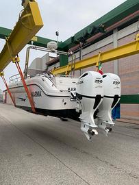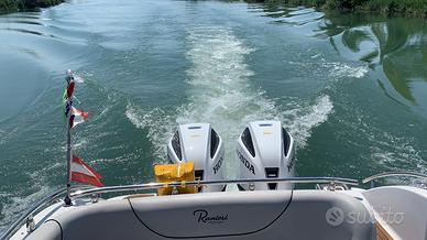 RANIERI SHADOW 30 con COPPIA HONDA MARINE BF250 Barca anno 2015, motori anno 2021 250 ore di moto, tagliandi certificati. Dotazioni incluse: pilota automatico Garmin con telecomando, radar Garmin HD, plotter garmin 1223xsv con Clear view, VHF Garmin315i, impianto stereo Fusion con autoparlanti interni ed esterni, elica di prua, salpancora elettrico con contatore catena, verricello di ancoraggio rinforzato con telecomando (anno 2024), 3 batterie nuove anno 2025, wc elettrico con lavabo e doccia, piano cottura in vetroceramica, lavabo e frigorifero all'interno, fornello a gas con lavabo sotto consolle di guida, impianto caricabatterie, 2 pompe di sentina automatiche elettriche, scaletta bagno, bimini top molto grande, teli di copertura, doccia in pozzetto. Prezzo incluso di provvigioni Barca in ottime condizioni Visibile a Marano lagunare