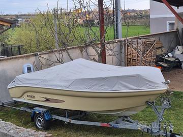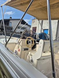 Vendo bellissima Ranieri Shark 17 con motore Honda 40/65 con meno di 300 ore e carrello ellebi 1000 kg appena revisionato Dimensioni: 5.50m fuoritutto 2.10 larghezza serbatoio benzina sotto consolle serbatoio acqua dolce con doccetta tendalino in acciaio con prolunghe prua e poppa cuscineria pari al nuovo divanetto di poppa prendisole di prua scaletta pieghevole autoradio con casse bussola pompa di sentina telo pari al nuovo con bottoni ecoscandaglio