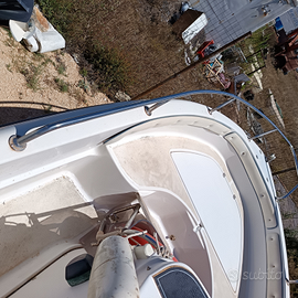 tanka benzina 100 litri in acciaio inox coibentata e riempimento dal sedile centrale, tendalino, scaletta , 4 salvagenti individuali, luci di navigazione + tromba elettrica per segnalazione acustica, supporto a poppa per motore emergenza (motore Yamaha 4cv disponibile prezzo non incluso), pompa sentina manuale, remi +scalmi ed ecosounder Humminbird High speed con sensore già montato+ mezzomarinaio+ filtro benzina fisso nel pozzetto centrale.