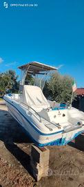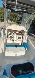 Vendesi Ranieri Soverato 550 completa di tendalino e cuscineria in ottime condizioni, tavolino pranzo, T-Top con luce notturna, pompa acqua marina per vasca del vivo, doppia batteria con selettore, filtro benzina con doppio attacco per 2 motori e supporto motore ausiliare, VHF, ancora 7 Kg + 100 mt di cima, bussola, radio FM bose, 4 portacanne, kit dotazione 12 miglia, zattera per 6 persone da revisionare, attacco stagno 12 V. per mulinello elettrico e vasca del vivo, serbatoio benzina fisso 80 lt. Nessun segno di osmosi.