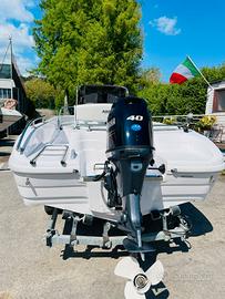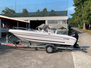 Centro Nautico S. Anna, concessionario del cantiere Ranieri ha il piacere di proporvi la nuova super offerta di primavera! Approfitta della Super Promo dei Ranieri Days, ordina la tua prossima barca entro il 31 maggio e avrai un forte sconto sul prezzo di listino!! Ranieri SOVERATO 545 NUOVA, in package con Mercury 40/60 Orion, pronta per navigare, non serve la patente nautica! Prezzo PROMO RANIERI DAYS a partire da soli 19.900 Euro Iva Inclusa (Listino 28.500 Euro) *Per gli ordini entro il 31 maggio in OMAGGIO l’impianto stereo bluetooth Hertz con casse* Allestimento presente sulla barca: cuscineria completa de luxe timoneria meccanica con volante sportivo impianto elettrico completo con pulsantiera in consolle luci di navigazione e di fonda pompa di sentina scaletta di risalita in inox telescopica ad incasso serbatoio fisso benzina con imbarco esterno Impianto batteria con deviatore staccabatteria Dati della barca. Lunghezza: 5.45 mt Larghezza: 2.15 mt Portata: 7 persone Peso: 500 Kg Le sue linee eleganti e la storica qualità costruttiva delle barche Ranieri si sposano con la praticità e il comfort in navigazione, l’ideale per le vostre gite in famiglia e per la pesca. Veniteci a trovare Sul Lago Maggiore nella nostra marina a Sesto Calende, oppure contattateci per un preventivo personalizzato con le motorizzazioni e gli accessori che preferite. Siamo concessionari Ranieri, Scar, Seawind, Barqa, Ayros, dealer Mercury Marine, carrelli stradali Satellite, disponiamo inoltre di una selezione di usati garantiti con e senza patente.