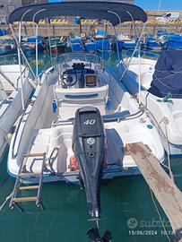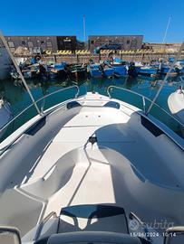 Salve Si propone in vendita barca Ranieri Soverato limited edition completa di motore e carrello La barca è corredata di: -tendalino -cuscineria (in parte nuova mai usata in qualche punto da sistemare) -Tavolino (non presente in foto) -Scaletta di risalia con staffa per motore ausiliario -stereo -Impianto elettrico -Luci di cortesia -Luci di navigazione -Tromba -Pompa di sentina -Serbatoio acqua -Serbatoio carburante -Dotazioni di bordo (ciambella anulare ancora giubbotti estintore kit 6 miglia cime ecc ) -Presa USB -Batteria nuova 2025 -Cavo sterzo nuovo 2025 Ecc - Motore Mercury EFI 40/60 anno 2010 con 400 ore circa con elica 4 pale - carrello ellebi lbn 1220 massa complessiva 1500 kg massa trasportabile 1180 kg praticamente nuovo ma senza revisione Solo barca e motore 8500 Completa di carrello 10500 Prezzo poco trattabile Saluti