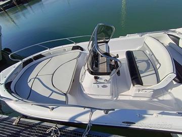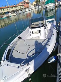 Barca di medie dimensioni tenuta maniacalmente . Anno di produzione 2017 con carena his con redan centrale . Cuscineria perfetta , dotata di pompa sentina automatica o manuale , batteria con stacca batteria , serbatoio 40 litri per doccetta , serbatoio carburante 70 litri con sgancio rapido del carburante originale Ranieri .