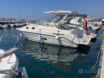 Come da titolo vendo natante 8 metri regal 258 del 1999 con motori entro fuoribordo mercury 150cv benzina a carburatore piedi poppieri alpha one 2 generazione.