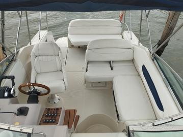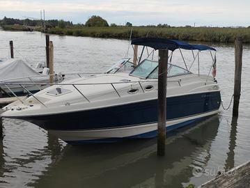 barca in ottime condizioni da tagliandare, 2+2 posti letto, bagno doccia separato, cucina, forno, microonde, due fuochi, frigo, carica da banchina......bimotore Mercruiser benzina 205x2 CV......anno 2000.... valuto permuta carrellabile preferisco contatto telefonico grazie