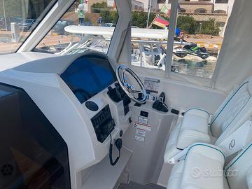 Helm Master EX Full Manovrabilità con Joystick, Radar, pilota automatico, Tendalino prua, Telo sole prua e Cockpit "Sunshade", Tavolo e Divanetto a prua, Finestrino bagno, Fish Package; Top Gun Outriggers 15°, Toilette elettrico con scarico automatico, doccia interna e esterna, riscaldatore acqua, 4 posti letto, Finestre laterali scafo, Dual Garmin 1242 + B60 Trasduttore, Climatizzatore automatico e riscaldamento, Elica di Prua, Pavimento Pozzetto in Seadek, Telo completo invernale e trasporto, telo per copertura prua e cockpit,