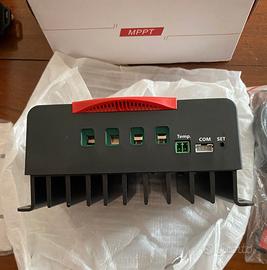 Regolatore di carica per pannelli solari, marca SRNE con tecnologia MPPT. Completo di modulo bluetooth e sensore di temperatura batterie. Costruzione robusta con scocca e dissipatore in metallo, copia del più blasonato Victron, ma molto più economico. Completamente controllabile e regolabile attraverso la app gratuita SRNE. Nuovo in confezione originale, mai installato e utilizzato. Vendo per cambio progetto. Disponibile alla spedizione.