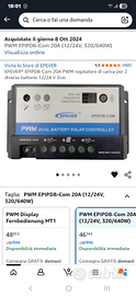 EPEVER EPIPDB-Com 20A PWM regolatore di carica per 2 diverse batterie 12/24 V Duo + Display EPEVER MT1 Display Il telecomando solare MT1 con indicatore di comfort per il regolatore di carica solare EPIPDB-Com come da foto, acquistati insieme a Ottobre 2024 e MAI MONTATI, insieme costano all'incirca 100? vendo a 70? non trattabili, scambio a mano zona Livorno e Pisa adatto per barche camper ecc. per altre informazioni contattatemi pure