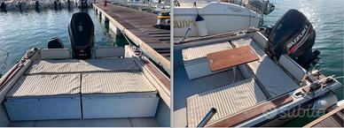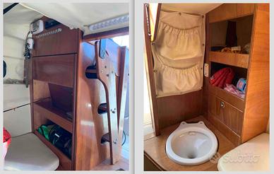 cuscinerie interne e esterne, tendalino, telone consolle parapioggia, tavolo esterno, prendisole componibile, vari gavoni e mobiletti, illuminazione, Prese elettriche e usb, luci di via, bussola, impianto elettrico nuovo con fusibili a riarmo, finiture in teak