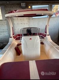 ganci interni per il sollevamento, teak a prua, poppa e sulle paratie laterali, carico esterno benzina e acqua tendalino prua e poppa luci cortesia interne sedile a scomparsa