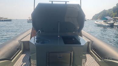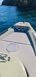 Versione full Limited edition esemplare unico Black devil anno agosto 2022 Coppia fuoribordo Motori mercury verado 350 Ore di moto 100 ancora in garanzia Resina ral 7033 grigio cemento Tubolari black carbon Due scalette di risalita Tre docce Piano infusione Frigorifero Bagno separato 4 posti letto Gps garmin touche screen da 9 pollici Console centrale in carbonio Verricello elettrico azionabile da posizione guida e tramite telecomando sul musone con Conta catena Quick touche screen nero Impianto stereo fusion con 8 casse più subwofer e amplificatori fusion Gomma Tek grigio tutto il piano di calpestio Elica di prua con jostyc 5 batterie Serbatoio benzina da 600 litri Serbatoio acqua 120 litri tanti altri optional che lo rendono full . Visibile in rimessaggio invernale concordare telefonicamente per una visione e astenersi sognatori e affaristi. È possibile scambio con auto di mio gradimento .