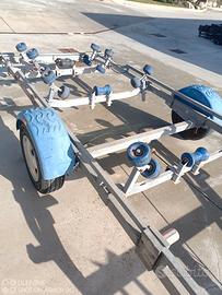 Rimorchio LB appena revisionato messo i freni nuovi cavo di traino con Leva nuovo rimorchio 1500 /1200 kg massa complessiva perfetto in ogni cosa molto robusto lunghezza carrello 7 m circa adatto per qualunque tipo di barca ottima occasione