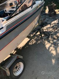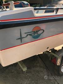 Rio 450 top barca datata ma in ottime condizioni con motore Evinrude 70 cv e carrello da collaudare serbatoio sotto la prua in acciaio inox da 100 lt barca sempre rimessata dopo ogni uscita motore sempre mantenuto parte al primo colpo lo scafo sotto e in perfette condizione di fianco vicino al parabordo presenta un segno di facile riparazione . Disponibile per presa visione e messa in moto e se veramente interessati con prova in acqua prezzo trattabile