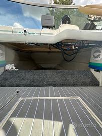 - Pavimentazione antiscivolo interna e sulla pedata di poppa in teak eva;