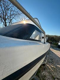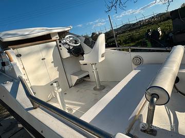 Barca Rio onda 550 motorizzato 40/60 Yamaha 4 cilindri 4 tempi tagliandato, perfettamente funzionante, barca comoda, confortevole e pratica. Rio open mare scafo solido con ottima tenuta. CAP 19 metri patente scafo