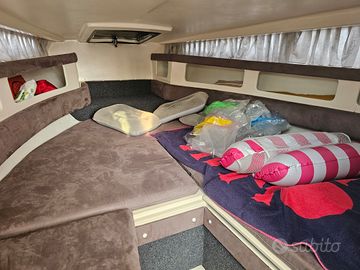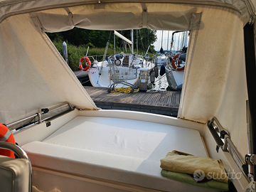 Rio 590 Cabin con motore Volvo Penta AQ151C benzina, tendalino estivo, cappottina totale sia estiva che invernale con apertura posteriore, cuscineria interna ed esterna perfetta, ampi prendisole anteriore e posteriore, telo copertura parabrezza, salpa ancora, wc, ampi gavoni, impianto stereo, rimessaggio completo eseguito a maggio 2025, cinghia di distribuzione e alternatore comprese. Doppia batteria motore e servizi, doccetta, dotazioni di sicurezza. Telo completo invernale. Visibile a Monfalcone