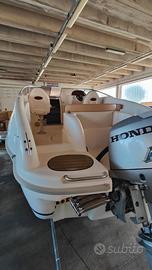 Cabinato dello storico cantire RIO, modello 600 CRUISER (01) completo di motore HONDA 90 (02) e carrello PEDRETTI.