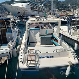 Vendo RIO 650 Cabin, motore Yamaha 4.3 benzina sempre tagliandato in ogni sua parte, piede Apha one Doppia batterie 100A. Impianto luci, stacca batteria, Serbatoio benzina da 200 litri in acciaio nuovo. Serbatoio acqua 100 litri e doccetta a poppa. Scaletta in acciaio .