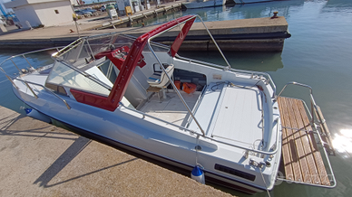 La barca è motorizzata con 2 Volvo Penta AQ120 entrofuoribordo da 120 CV cadauno, è dotata di 3 posti letto con annesso bagnetto ed è munita di ogni tipo di servizio necessario a bordo come ad esempio:
