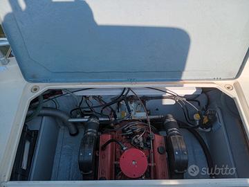 motore Volvo Penta 500b, 200cv benzina, totalmente revisionato, piede 290 duo prop revisionato, idroguida, con gel coat e verniciatura originale, MAI RIVERNICIATA, wc elettrico nuovo, rubinetteria nuova, autoclave e tubazioni varie nuovo, impianto doccia nuovo, impianto elettrico interamente nuovo, quadro interruttori/strumentazione nuovo, ecoscandaglio 7" garmin, serbatoio acqua 100lt. e carburante 200lt. entrambi inox, 2 batterie con deviatore di carica, flap pneumatici, telo di copertura notte nuovo, cuscineria e rivestimenti interni/esterni in materiale nautico di qualità tutto nuovo, luci varie led, caricabatterie elettronico da banchina, salpa ancora radiocomandato, portacanne inox, tanti altri accessori, ecc.