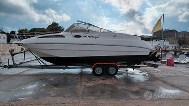 Stupenda rio 750 cruiser, monta 2 motori mercruiser 3.0, 140 cv. seminuovi con solo 250 ore e piedi alpha one gen2, manutenzione ordinaria ai motori e ai piedi appena fatta. Tappezzeria esterna rifatta l'anno scorso, tappezzeria interna originale e in ottimo stato, spiaggetta di poppa allungata e con teak sintetico, super accessoriata e tutto funzionante. La barca è già pronta per andare a mare non necessita di niente, disponibile per qualsiasi prova anche con vostro meccanico di fiducia, per altre informazioni potete contattarmi in qualsiasi momento.