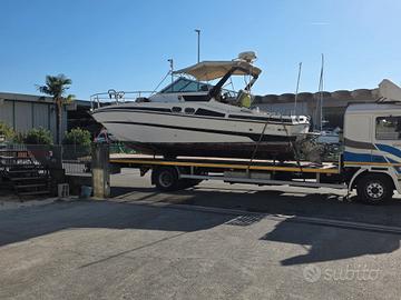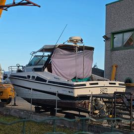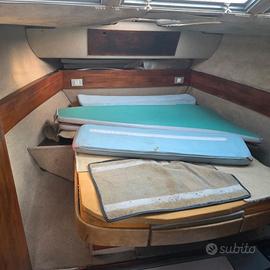 Barca Rio Cabin 830 da restaurare con 2 motori entrofuoribordo 6 cilindri turbo diesel da 175cv con doppia elica (eliche e ogiva Ok) funzionanti. Con sedile da pesca a prua n. 2 cabine separate più bagno. Barca attualmente alata in cantiere. Vendo x cambio progetto.