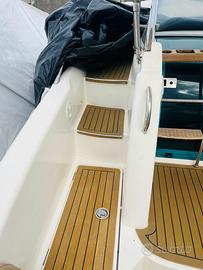 Eseguiti tutti i lavori di manutenzione e tagliandi completi a Maggio 2024. Imbarcazione eccellente in pronta consegna. Cabina open space con letto a V a prua, locale WC separato con cabina doccia, cucina a SX con lavabo, frigo VITIFRIGO c421, n* 2 fuochi a gas, cabina di poppa open space; ampio pozzetto di poppa con prendisole con gavone sottostante e tavolo, mobile living con lavabo e frigo VITIFRIGO C 42L, plancia comando con seduta pilota,ampio prendisole di prua, tendalino parasole con arcata in acciaio, coperta e pedana,pozzetto e walk di poppa rivestita in TEAK, tutta cuscineria, predisposizione tv con staffa già installata, telo copri strumenti.