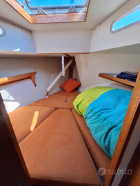 Spostandosi verso poppa si trova il tavolo da carteggio con tutta la strumentazione necessaria per la navigazione, vicino al tavolo da carteggio si trova un piccolo letto lungo il corridoio che porta alla cabina di poppa, la quale ha un suo bagno con wc e doccia.