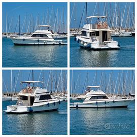 Imbarcazione in ottimo stato generale,Riviera versione 43 Sport Fisherman con Flybridge immatricolata anno 1999,mt.14,70x4,77,motori 2x435 Caterpillar-Modello Dita completamente rifatti nuovi Settembre 2023 e con zero ore di moto,turbine e iniettori nuovi,2 cabine e dinette trasformabile,cabina armatoriale a prua con letto matrimoniale,locale wc con cabina doccia separata,cabina ospiti con due letti e locale wc con doccia,ulteriore letto matrimoniale nella dinette trasformabile,aria condizionata in tutti gli ambienti,Boiler,Tv,impianto stereo con diffusori audio anche esterni,doppi comandi(interno e fly),Gps Raymarine con plotter cartografico,pilota automatico,gruppo elettrogeno diesel 8 Kw,batterie nuove(Gennaio 2023),pozzetto in teak,cuscineria esterna nuova,ancora e catena in acciaio inox 75 metri,plancetta in Vtr allungata,scaletta in acciaio,passerella Besenzoni elettrica.