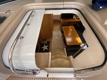 Dati tecnici Bandiera Italia Lunghezza 12,50 m Larghezza 4,48 m Immersione 0,90 m Dislocamento 13.000 Kg IVA Pagata Persone trasportabili 12 Imp. elettrico 12V 220V Serb. carburante 1.550 L Serb. acqua 460 L Motori2 x 430 Hp - Volvo Penta TAMD74 EDC (2000) Ore moto 444 Generatore KOHLER 8 kW Numero cabine 1 Numero bagni 1 Posti letto 2 POSSIBILITA' DI PERMUTA PREZZO RIDOTTO PER VENDITA ECCELLENTI CONDIZIONI GENERALI FULL-FULL OPTIONAL TOTALMENTE RIFATTA TRA IL 2017 ED 2023 POCHE ORE DI MOTO DALLA REVISIONE COSTANTEMENTE AGGIORNATA E TAGLIANDATA INVERNO SEMPRE CAPANNONE STRUMENTAZIONE ELETTRONICA DI NAVIGAZIONE Angolo barra, Bussola, Contametri catena, Ecoscandaglio, GPS, Pilota automatico, Plotter con antenna GPS, Radio VHF, Sedile Copilota. ALLESTIMENTO TECNICO DI COPERTA Allarme fumo/gas, Allarme motore, Allarme sentina, Ancora, Apertura Vano Motore Elettrica, Autoclave, Batterie, Caricabatterie, Doccia esterna, Elica di poppa - stern thruster, Elica di prua - bow thruster, Faro orientabile, Flap elettrici, Hard top, Impianto antincendio, Luci di cortesia, Passerella, Piattaforma, Pompa di sentina automatica, Pompa di sentina elettrica, Pompa di sentina manuale, Porta ingresso, Pozzetto Teak, Presa 220V banchina, Salpa Ancore Elettrico, Scaletta da bagno, Tavolo pozzetto, Tromba, Winch tonneggio di poppa. DOTAZIONI DOMESTICHE DI BORDO Antifurto, Aria condizionata (ESTERNA ED INTERNA), Boiler, Clima reversibile, Dissalatore, Impianto acque nere, Prese interne 220v, Riscaldamento, Telecamera, WC marino elettrico. INTRATTENIMENTO Altoparlanti, Antenna Satellitare TV, Digitale Terrestre, Impianto TV, Stereo, TV. ACCESSORI DA PESCA Portacanne, Vasca del vivo. CUCINA ED ELETTRODOMESTICI Cucina, Frigorifero esterno, Frigorifero interno, Microonde, Piastra in vetroceramica. TAPPEZZERIE Cuscineria completa, Cuscineria di poppa, Cuscineria di prua, Cuscineria Pozzetto, Oscuranti, Teli copri finestra, Telo copriconsolle, Tendalino.