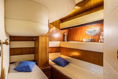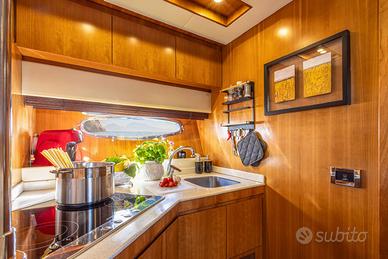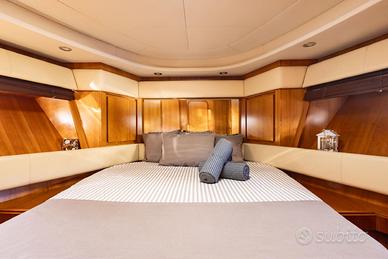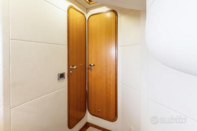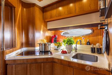 Accessoriato con generatore di corrente, aria condizionata in tutti gli ambienti, strumetazione completa, full teak, passerella idraulica, elica di prua, impanto stereo e tv, doppio frigo interno - esterno, tende e cuscini completi in ottimo stato.