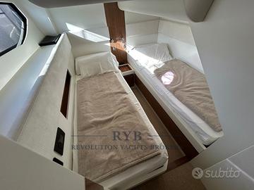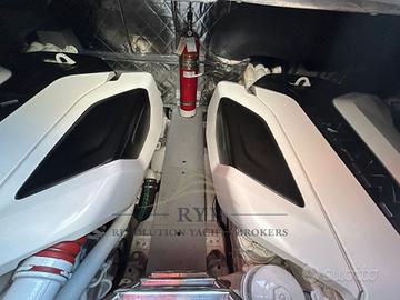 Motorizzato con una coppia di MAN 850cv con trasmissione a eliche di superficie, offre prestazioni di alto livello. Full optional, include aria condizionata, joystick di manovra, completa strumentazione Raymarine, impianto Fusion in tutti i locali, teak in ottimo stato, tettino apribile e molto altro. Uno yacht che coniuga tecnologia, comfort e stile.