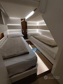 Motorizzato con una coppia di MAN 850cv con trasmissione a eliche di superficie, offre prestazioni di alto livello. Full optional, include aria condizionata, joystick di manovra, completa strumentazione Raymarine, impianto Fusion in tutti i locali, teak in ottimo stato, tettino apribile e molto altro. Uno yacht che coniuga tecnologia, comfort e stile.