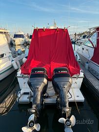 Vendo per conto terzi Robalo 2660 motori 2x250 Yamaha OX66 iniezione elettronica, h 700 ca., motori perfettamente funzionanti, barca in ottimo stato refiting del 2024 con inserimento di bracket in alluminio, strumenti Furuno Navnet display multifunzione 10,4", gps cartografico, ecoscandaglio, radar, pilota automatico Raymarine, VHF Icom, faro direzionale comandato da plancia, verricello salpancora con catena ed ancora, flaps di assetto motorizzati, 2 nuove batterie 100 + 150 Ah caricabatterie a panchina; tappezzerie e cuscinerie nuove, chiusura completa rimovibile, oblò laterali inox e passouomo nuovi, wc in cabina separata con scarico a mare, lavello e fornello a gas nel pozzetto... e tanti altri optional pesca e comfort! pronta alla navigazione e possibile prova in mare!