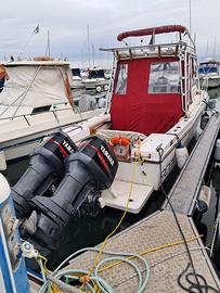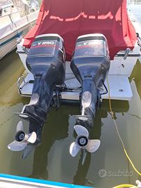 Vendo per conto terzi Robalo 2660 motori 2x250 Yamaha OX66 iniezione elettronica, h 700 ca., motori perfettamente funzionanti, barca in ottimo stato refiting del 2024 con inserimento di bracket in alluminio, strumenti Furuno Navnet display multifunzione 10,4", gps cartografico, ecoscandaglio, radar, pilota automatico Raymarine, VHF Icom, faro direzionale comandato da plancia, verricello salpancora con catena ed ancora, flaps di assetto motorizzati, 2 nuove batterie 100 + 150 Ah caricabatterie a panchina; tappezzerie e cuscinerie nuove, chiusura completa rimovibile, oblò laterali inox e passouomo nuovi, wc in cabina separata con scarico a mare, lavello e fornello a gas nel pozzetto... e tanti altri optional pesca e comfort! pronta alla navigazione e possibile prova in mare!