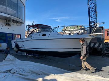 Refitting totale scafo e sostituzione coppia motori fuoribordo con coppia Mercury EFI 225HP, 4 tempi anno 2003, con sole 350 di utilizzo ore per motore.