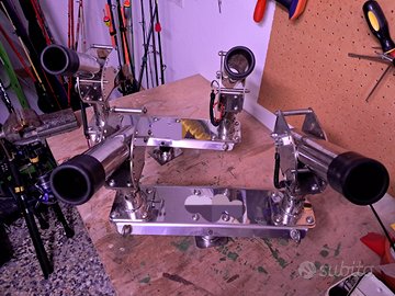 Robusto rocket in acciaio inox 316 lucidato a specchio. Costituito da 2 portacanna basculanti a 90°. Sono praticamente nuovi, usati un paio di volte. Il prezzo è inteso per i 2 rocket ed i 4 portacanna.