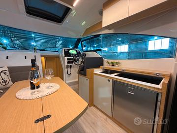 Display (Pack Elettr. Garmin 1223xsv . Multifunzione Navigatore, Ecoscandaglio), Elica di prua , Flap idraulici, Indicatori Flaps, 2 Luci di cortesia, Salpa Ancore Elettrico, Stereo (Impianto Fusion. Altoparlanti interni ed esterni, subwoofer esterno amplificato.)