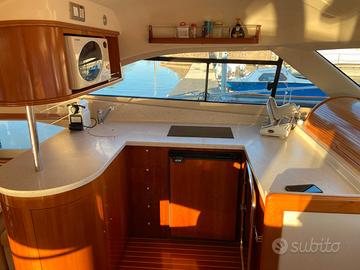 Ore di moto 690, portata 12 persone, 3 cabine, 6 posti letto, 2 bagni, 2 docce, serbatoio acqua dolce 450 lt, serbatoio gasolio 1400 lt, Piano cottura con vetroceramica/induzione, microonde, Frigorifero, bussola, Pilota automatico Simrad Plotter+cartografico Simrad (nuovi 2022), VHF, radar, Profondimetro, Caricabatterie, generatore, illuminazione di navigazione, correttori di assetto, Verricello di prua, elica di prua, pompa di sentina, Sistema antincendio, Riscaldamento Webasto, Aria condizionata, WC elettrico, Sistema idrico pressurizzato, Sistema di acqua calda, TV (nuovo 2022), Sistema SAT (nuovo 2022), Radio + lettore CD (nuovo 2022), Piattaforma da bagno integrata, Scaletta per il bagno, Passerella elettrica (fasce nuovo 2021), Cockpit Fly - Telone (Nuovo 2022), Bimini (telone e pali nuovi 2022), Cuscini prendisole sul ponte (nuovi 2023), Telo invernale (Nuovo 2023), Telone posteriore, Protezione solare posteriore, Materasso nella cabina armatoriale (nuovo 2022), Gommone+motore elettrico (motore nuovo)
