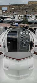 Dotato di salpa ancora elettrico,doppia batteria,luci pozzetto, serbatoio benzina maggiorato,impianto stereo hertz,tendalino,completa di dotazione di bordo