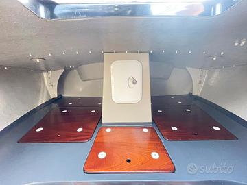 Mt. 8,96 x 2,73 Immersione 0,45 - 1,45 Costruzione 2016 ; Primo varo 2017 Motore Nanni 1 x 14 hp Persone trasportabili 8 2 posti letto Unico proprietario Linee classiche e costruzione moderna contraddistinguono questa bellissima imbarcazione che combina qualità eccezionali nel design e nelle finiture con un equilibrio esemplare a vela. Tutto il piacere della navigazione senza difficoltà di manutenzione anche grazie alla scelta del teak sintetico. Barca versatile, progettata per adattarsi a tutti i velisti, si può utilizzare da soli oppure in coppia, con la famigllia o con gli amici. Le attrezzature essenziali sono riportate al timoniere, a poppa, per facilitare la conduzione. Dispone di una cabina con ampio stivaggio e due cuccette confortevoli per trascorrere la notte a bordo. La deriva mobile offre stabilità e praticità, nei bassi fondali o con le maree ed il bompresso retrattile offre un'esperienza di navigazione fluida, senza ostacoli. Tutte le vele sono avvolgibili ed anche il tavolo retrattile offre un comfort senza pari. Imbarcazione dalle prestazioni ineguagliabili anche con pochissimo vento, facile da manovrare e trasportare, veloce da armare. Accessori opzionali presenti a bordo: ponte in flexiteek, randa, fiocco autovirante, gennaker (2024), bompresso in alluminio, avvolgifiocco, copriranda, coprifiocco, tendalino parasole, tappezzeria completa nel pozzetto, tappezzeria completa nella cabina, tavolo pieghevole nel pozzetto, doccia in coperta, pack elettronica (velocità, ecoscandaglio, anemometro), scafo nero, àncora 9 kg. con cima e catena.