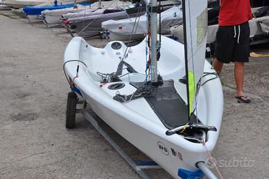Completa di carrello di alaggio, timone e deriva, telo superiore, gioco vele allenamento (1 randa, 1 fiocco 1 gennaker), gioco vele da regata (randa acquistata settembre 2024 e fiocco), giro drizze e scotte nuove, eseguita revisione strozzatori, bozzelli e anelli.
