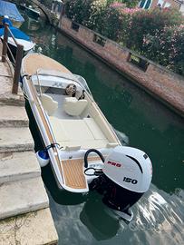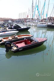 Viene venduta compresa di impianto elettrico base con luci di via, luci interne, pompa sentina, pannello interruttori, bottazzo, bitte, tiemo, volante, tappezzeria, timoneria con monocavo.