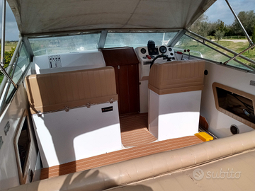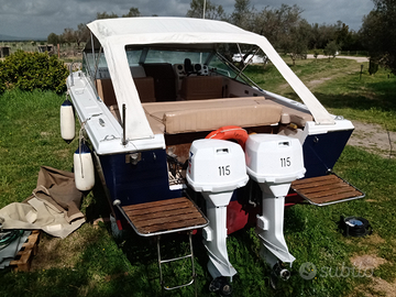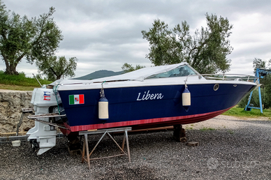 barca del 1986 mantenuta ed efficiente e usata principalmente al lago di Bolsena , dispone di due posti letto un bagno e cucinino, leggermente trattabile dopo visione