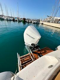 Vendesi gommone 8mt f.t. Con motore Mercury 300 cv colore bianco di giugno 2020 con circa 800 h. sempre tagliandato da officina Mercury Ufficiale il gommone è in perfette condizioni, tubolari rifatti nel 2022, sempre nel 2022 è stata rifatta tutta la carena, il rollbar e tutte le parti in resina interne ed esterne. Dotato di tendalino, doccia, radio Boss del 2026, manetta elettronica, salpa ancora elettrico, frigo e gps. Serbatoio in acciaio inox da 250 lt e serbatoio acqua in acciaio inox da 80 lt (sbarcati e revisionati nel 2025), doppia batteria, presa 220 volt da terra, filtro decantatore, attacca/stacca batteria del 2023, pompa di sentina automatica, fari di profondità regolabili a 360 gradi. Pagliolato in vero teak, grande prendisole posteriore e anteriore con possibilità per il posteriore di creare una dinette con spalliera, ancora di cortesia, scaletta in acciaio e tutte le dotazioni di sicurezza incluse. Visibile a Capo d'Orlando. Prezzo 40.000,00 non trattabile.