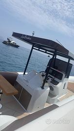 Bellissimo gommone totalmente ideato e realizzato dal nostro cantiere, sono state scelte tonalità di colori e tipi di materiali che mantengono la giusta armonia tra l'eleganza e la sportività naturale di un gommone come questo. Ampio pozzetto con tavolo in teak comodo per 6 persone abattibile, con ampia cucina a 3 fuochi sotto la seduta di guida, doppio frigorifero e seduta a poppa che viene trasformata mediante uno schienale/poggiatesta basculante che in in posizione funge da solo poggiatesta per il prendisole di poppa e nell'altra posizione sia da schienale per la seduta del pozzetto sia da poggiatesta per il prendisole.