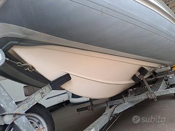 Pronta consegna. Carrello Revisionato a settembre 2025. Lunghezza: 4,75 m - 7 persone Tubolari e incollaggi revisionati da azienda specializzata. Sostituite le fasce di finitura. Nuove fasce di protezione sotto i tubolari. Carena in vetroresina in ottime condizioni. Tappezzeria e cuscineria nuove alla consegna. Impianto elettrico nuovo con batteria e staccabatteria. Pompa di sentina, luci di via, tromba, faro di profondità. Radio digitale con 2 altoparlanti. VHF Standard-Horizon. Pannello comandi con 2 prese 12V (installazione nuova). Motore Honda 40CV 4T (montato 2024) con trim elettrico. Carrello appena revisionato con impianto elettrico nuovo, gomme nuove + ruota di scorta Possibilità di visione senza impegno. Prezzo trattabile. Massima serietà.
